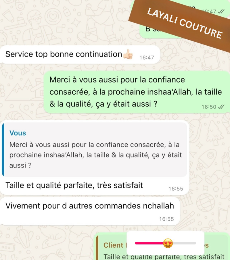 Preuve à l’appui : satisfaction garantie chez Layali Couture™